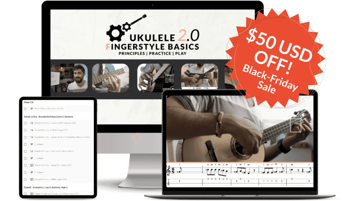 ✅ Develop a proper foundation in fingerstyle ukulele from the comfort of your home.